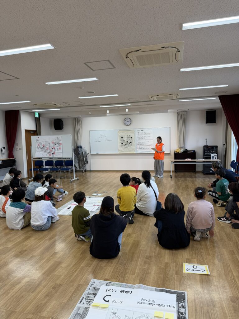 第2部のKYTでは、ジュニアリーダーが作成した危険予知シートを使用し、グループごとに身の回りに潜む危険について考えました。それぞれが意見を出し合い、特に危険と思われる箇所とその対策、スローガンをまとめて発表しました。どのグループもよくまとまり、主体的に取り組む姿が印象的でした。